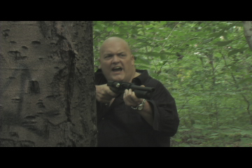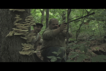 08-17-08 This past weekend the cast and crew of Fight the Panda Syndicate was out in the woods filming a scene in which Jim, G and Artie have just helped Rachel escape from the fortress and, as they are escaping, they run into none other than Renard and Otto Belmar. Needless to say, the scene turns into a brawl between Jim and Renard while Otto hunts Artie and Rachel through the woods. Renard and Jim battled it out to moves choreographed by Ace Laluces that matched up the french savate style of fighting with a blend of mixed martial arts. King Kong Bundy himself was back in action as Otto Belmar this weekend too, and this time he brought a particularly menacing penache to the role. We explored some wonderful improvisational lines as Otto stalked Rachel and Artie through what felt like the Forest of Endor on a much smaller scale and what was literally supposed to be Xiongmao's backyard. Afterward, scenes were shot involving Renard, Otto Belmar and the Unnamed Associate (played by Chris George) in which they take out a troupe of ninjas on their way out of the fotress and get into a massive argument in their car. This was our last BIG shooting weekend for FTPS, and it was a rousing success. Special thanks to everyone who helped make it a reality. With very little left to film, hopefully you will all be seeing our dark, action comedy very soon in a theater near you! Check back with us for more updates on the final scenes to be filmed and the post-production process.