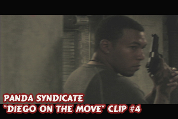 06-25-08 Here is the fourth clip that you may view from the film "Fight the Panda Syndicate" in which the character of Diego DeCastilhos is in pursuit of Jim, G, Artie and Rachel in an attempt to help them escape from the Beaver Creek complex. Diego breaks cover directly after this scene when he catches up with our heroes, explaining that he has been in deep cover with the Panda Syndicate for a long time. As you may have seen in CLIP #2, he is then taken captive by Victoria and Mitternacht for his betrayal. To find out what happens to Diego, you will just have to watch the movie and see for yourself! |