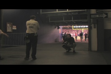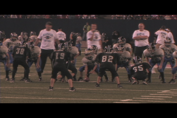 8-28-08 Representatives of Crazy Elk Production Studios were onhand for an outstanding rematch between the Giants and the Patriots today to film the halftime show, which involved football players from Mahwah, NJ's 3rd and 5th grade Thunderbirds led by Coach Karl Kreshpane. For anyone present, it was difficult to tell whether the kids or the coaches were more jazzed. Everyone involved seemed poised for victory, a victory which was inevitable by virtue of the fact that they had made it to the Meadowlands! Our crew was able to film warmup in the bubble adjacent to the stadium and then a march around the stadium and down a tunnel onto the field. Our cameramen were very excited to have the opportunity to film from not only the sidelines but on the field itself. Special thanks to Debbie and Karl for giving us this very special opportunity and to the teammates of the Mahwah football program who showed great tenacity in every play! |
