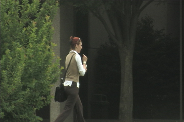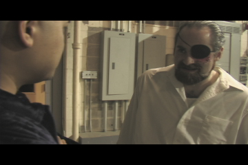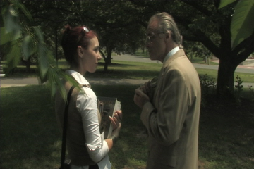 06-14-08 Today, we shot scenes in which Professor Rachel Gehret (Danielle Gardner) met up with a colleague of hers by the name of Professor Ian Redgrave (Carson Grant) on the campus of Bergen Community College in Paramus, NJ. In the scene, Professor Gehret receives information from Professor Redgrave about the "artifact" that Xiongmao has sought to possess for at least one thousand years. Having a very special cast of students come to populate what is "Northern State University" in the story of the film made our shoot even more successful. As Professor Gehret and Professor Redgrave were brightly discussing whether or not it would be worth Rachel's while to sell the artifact, some campus hijinks ensued. Special thanks to everyone who made this shoot yet another rousing success!